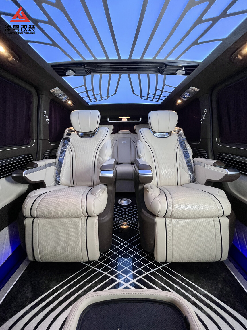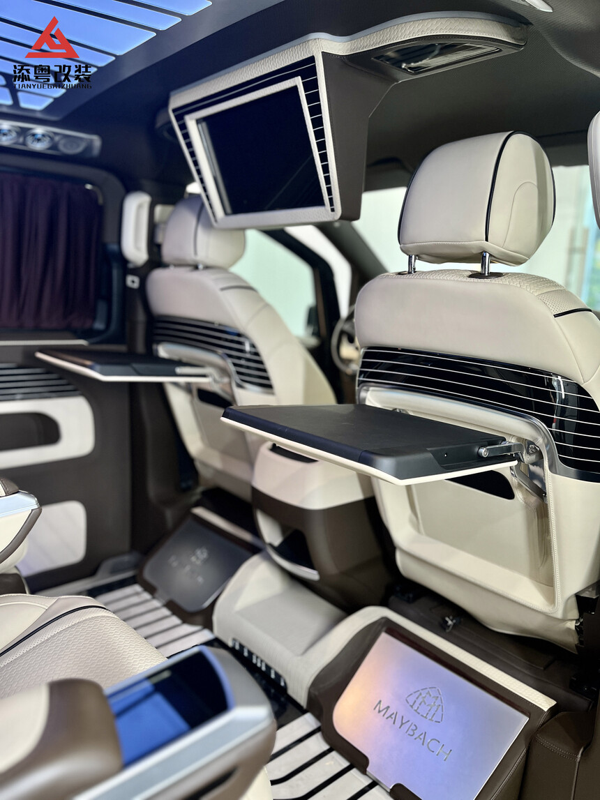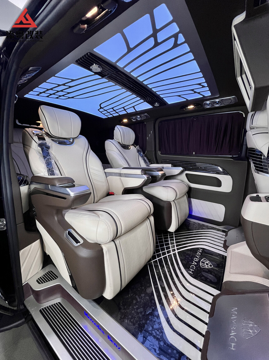 首页 >> 改装案例 >>奔驰威霆 >> 昆明添粤商务车改装丨威霆-经典迈巴赫包围白色内饰